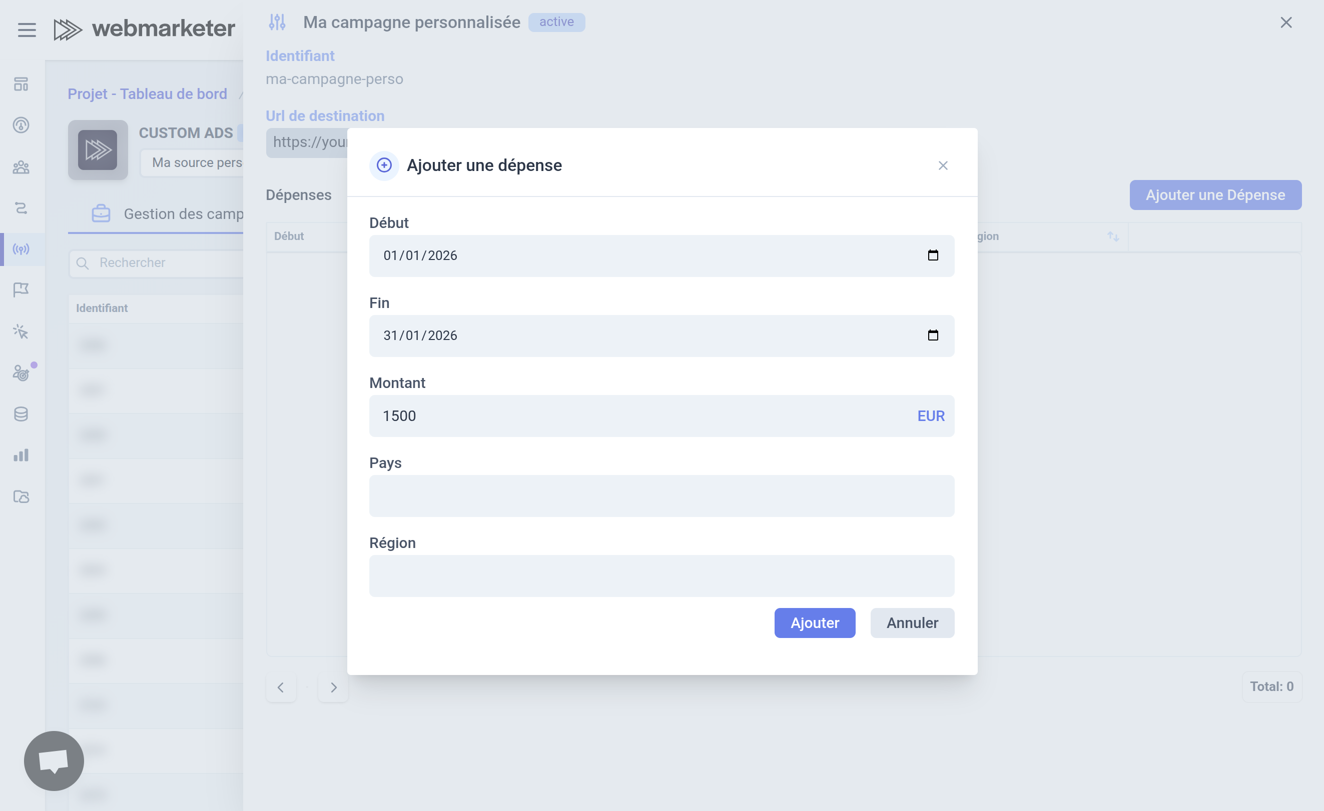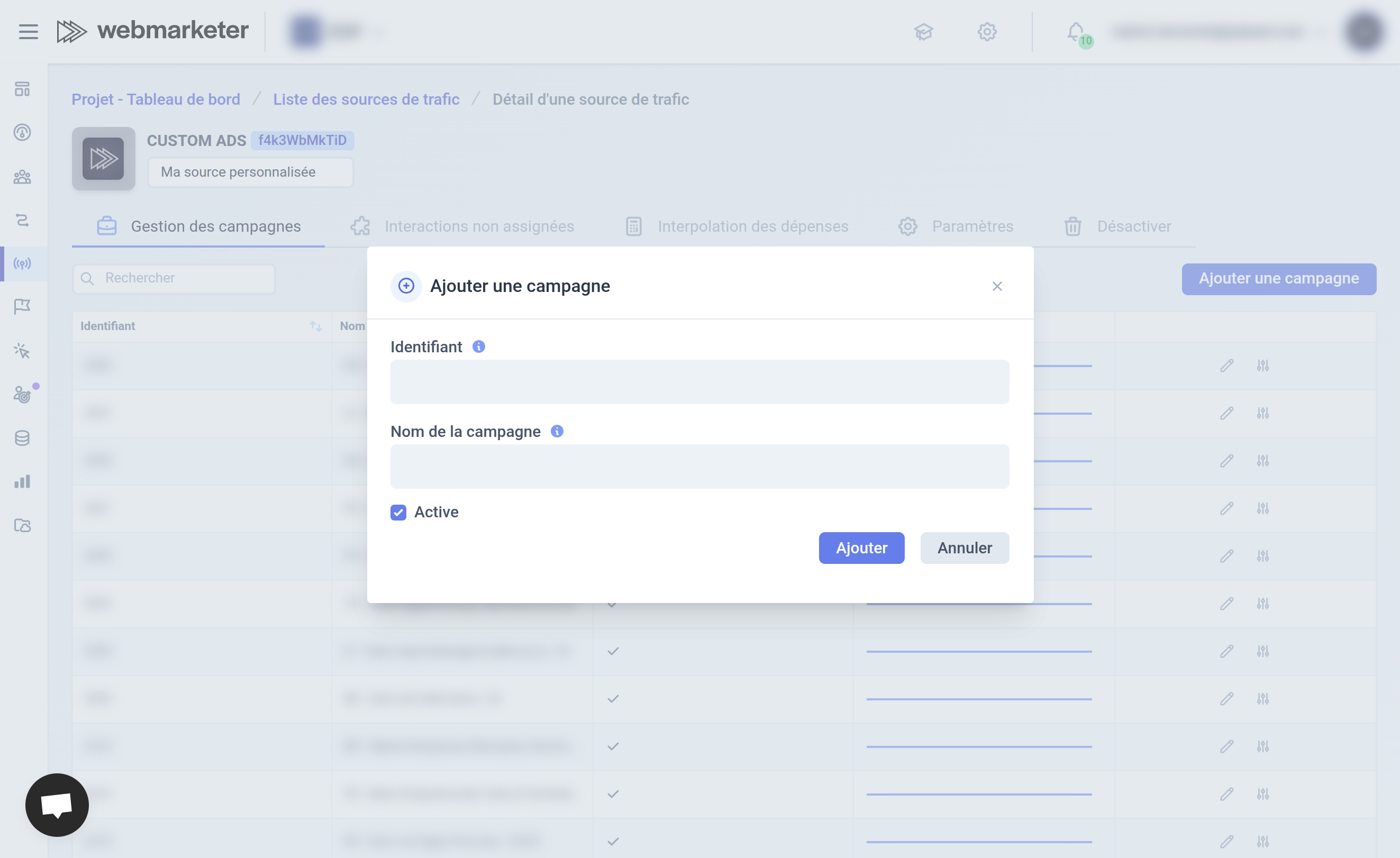 Cette source de trafic vous permet de déclarer vos campagnes et vos dépenses depuis l'interface de Webmarketer et depuis l'API.